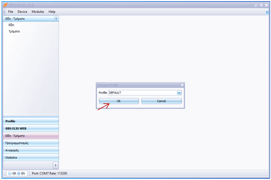 3.  Επιλέγετε προφίλ (DEFAULT ).