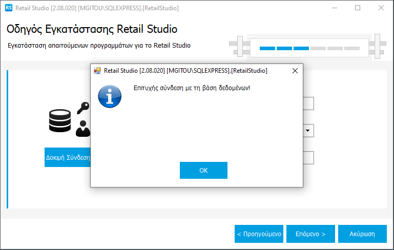 Με τον οδηγό Retail Studio Configuration ο χρήστης μπορεί να δημιουργήσει μια νέα βάση δεδομένων (με ή χωρίς στοιχεία επίδειξης) και να επιλέξει στα αντίστοιχα βήματα του οδηγού το όνομα και το instance στο οποίο θα δημιουργηθεί η βάση αυτή συμπεριλαμβανομένης και της δυνατότητας για δημιουργία νέου instance. Για να μπορέσει να αναγνωρίσει η εφαρμογή τις παραπάνω επιλογές και να συνδεθεί με την βάση που έχει δημιουργήσει ο χρήστης έχει δημιουργηθεί ο οδηγός RetailStudio Connection Wizard.
