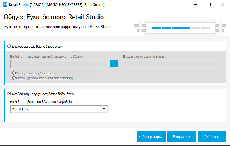 Επιπλέον, υπάρχει και η δυνατότητα αναβάθμισης υπάρχουσας βάσης δεδομένων, όπου επιλέγετε τη βάση που θέλετε να αναβαθμίσετε.