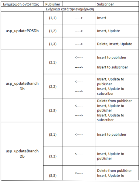- Αποστολή στοιχείων: Τα δεδομένα ενημερώνονται μόνο από τον Publisher προς τον Subscriber. Για παράδειγμα η οντότητα των στοιχείων των ειδών.