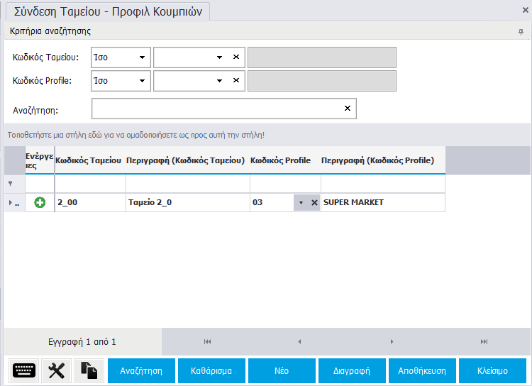 Σύνδεση Ταμείου – Προφίλ κουμπιών